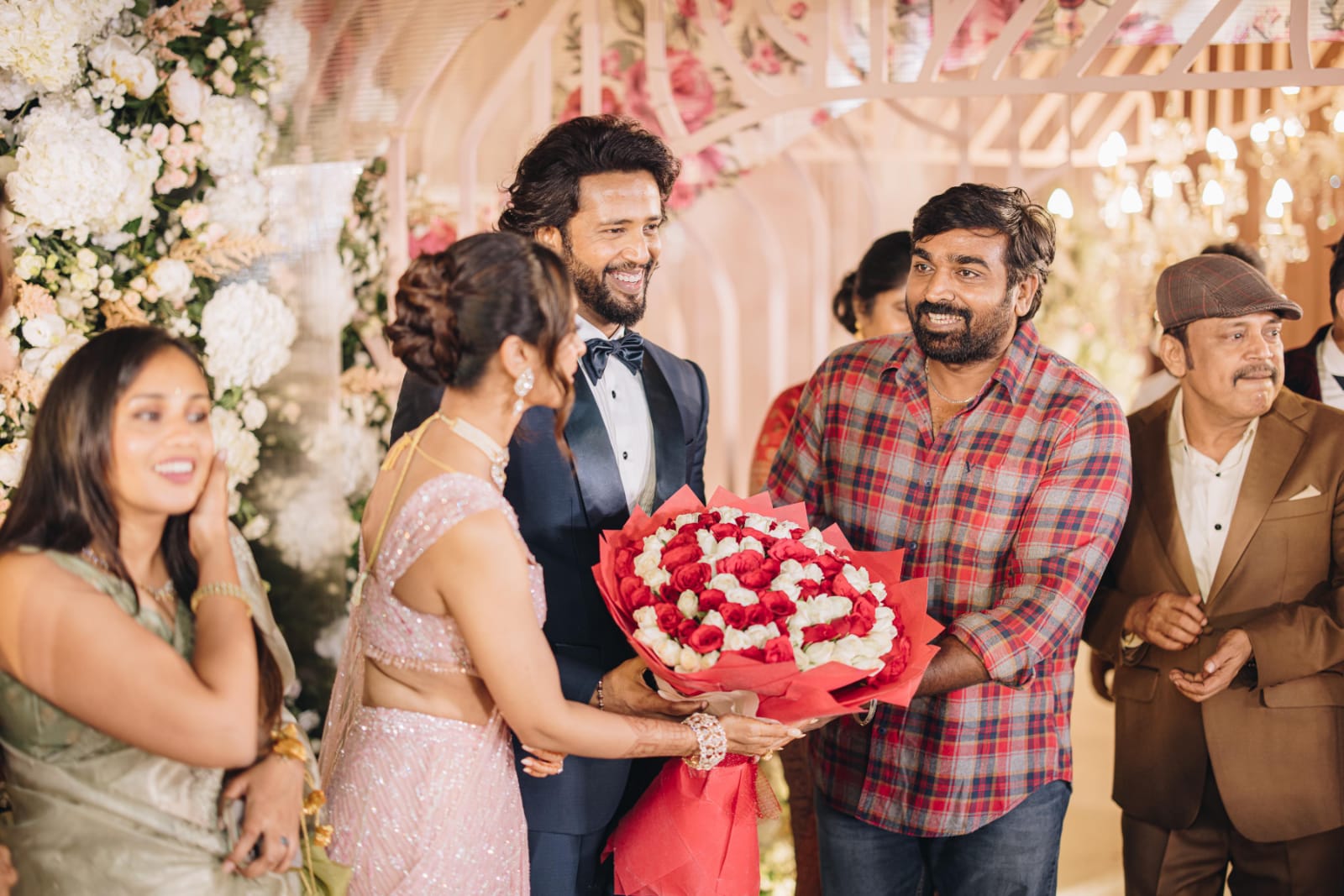 The grand reception of Aishwarya Arjun, daughter of Action King Arjun, and Umapathi took place on June 14th at the prestigious Leela Palace in Chennai. This splendid event was graced by many notable personalities from the film and political spheres, who gathered to bless the newlyweds.